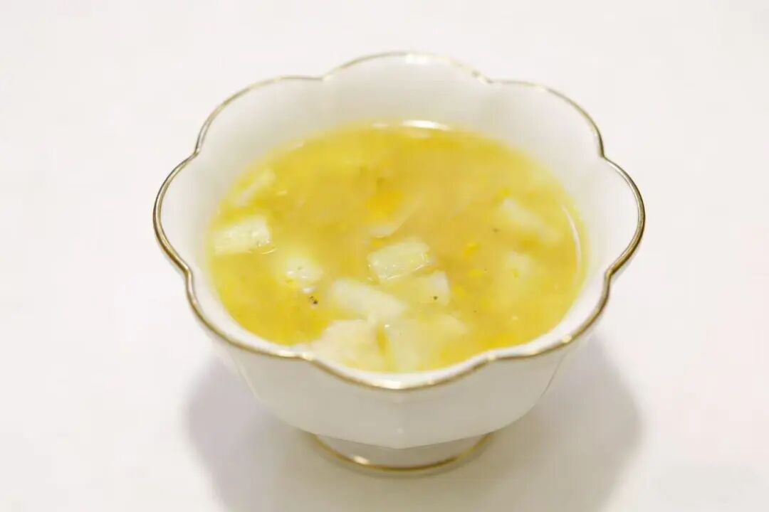 用鸡、火腿小火吊出金色清汤,再加入瑶柱增鲜,最后放入蒲菜略煮。蒲菜自身的清甜正好解了荤鲜的腻,上桌时汤色澄亮,蒲菜浸润其中,口感滑润。