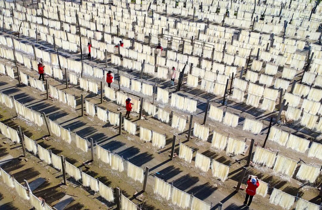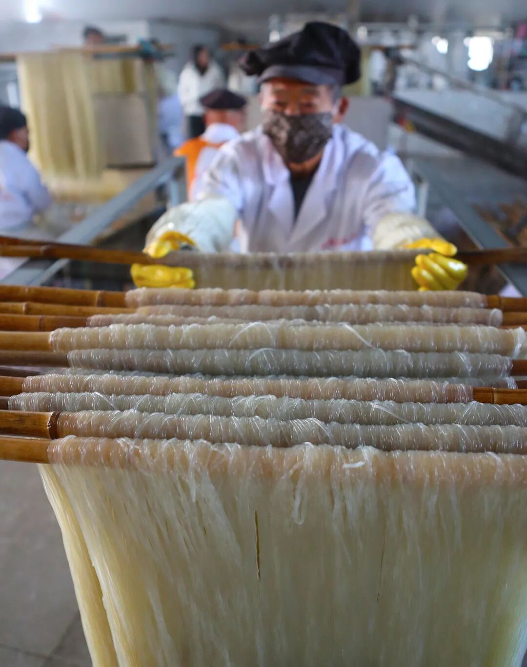 二十多年前,季翠平在传统一家一户零散制作粉丝的基础上创办了云燕粉丝厂,每到冬天,粉丝格外抢手,全国各地订单不断,工人熬夜赶工也供不上,只能眼睁睁退回部分订单。